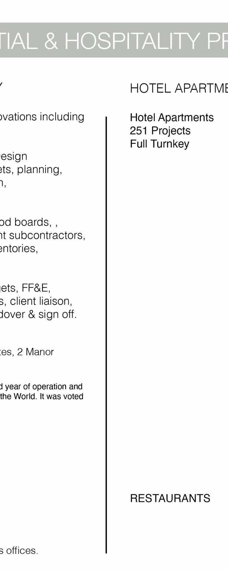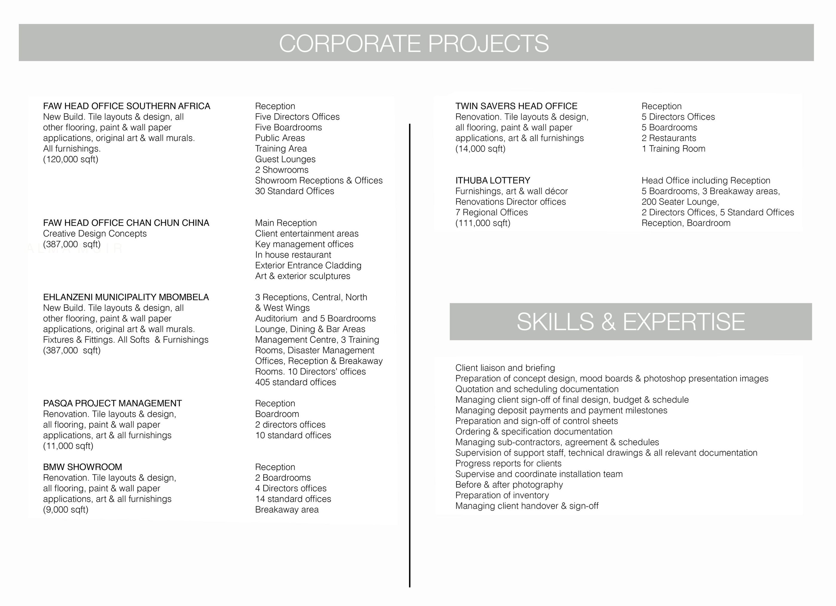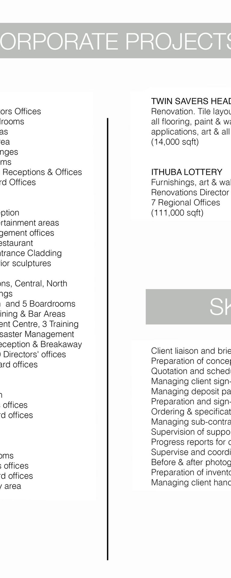 History of Projects & Scope of Experience
